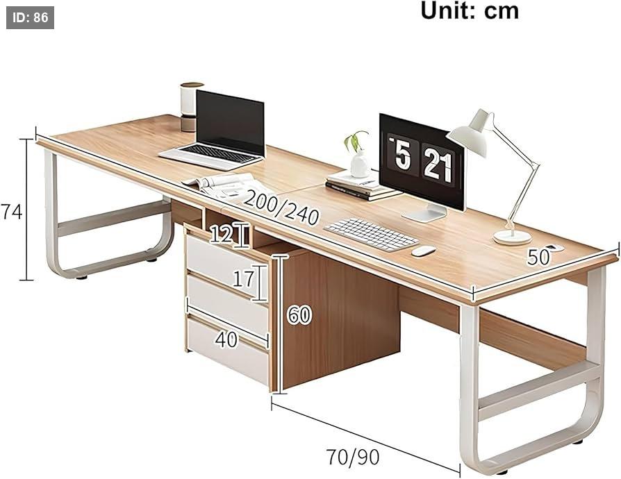 الأبعاد: يبلغ طول المكتب 240 سم، وعرضه (عمقه) 50 سم، وارتفاعه 73 سم.